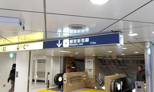 新宿線 「メトロ副都心線」「メトロ丸の内線」をご利用の方は、まずは「都営新宿線」の改札を目指してください。「都営新宿線」をご利用の方は、改札出て、左折直進します。