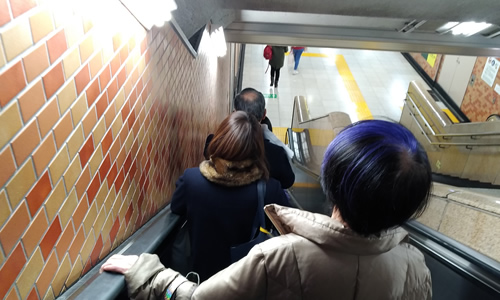 このエスカレーターから175メートル先に「新宿線」の改札があります。